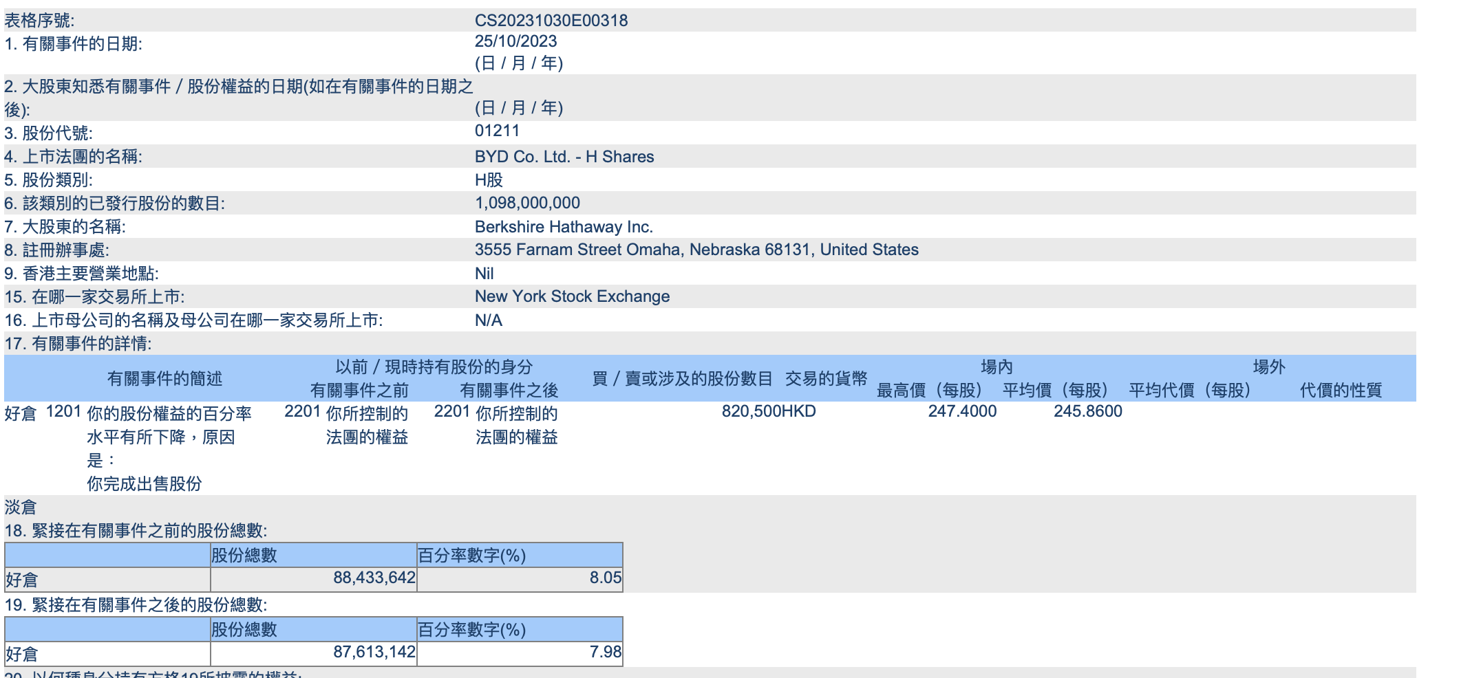 “股神”巴菲特旗下伯克希尔·哈撒韦不息减握比亚迪2024年皇冠轮盘。 10月31日,据港交所文献,10月25日,巴菲特旗下伯克希尔·哈撒韦以平均价每股245.86港元的价钱完成出售82.05万比亚迪H股(01211.HK),握股比例从8.05%降至7.98%。 体育彩票官方网站下载在最近的一场拳击比赛中,拳手迈克-泰森击败了他的对手,并赢得了比赛。然而,有人质疑泰森的胜利是否有猫腻。有消息称,泰森在比赛前接受了大量的兴奋剂注射,这让他的身体状态非常强壮,从而获得了不公平的优势。皇冠hg86a伯克希尔·哈撒韦这次套现约2.017亿港元。现在,伯克希尔·哈撒韦握股比亚迪共8761.31万股。 自2022年8月24日初度减握比亚迪以来,伯克希尔·哈撒韦已屡次减握比亚迪,其握股比例从2022年8月24日的19.92%下滑至如今的7.98%。 本周,国际局势相对“平静”,“热点”不多。而随着共建“一带一路”倡议提出即将迎来10周年,一些西方杂音、噪声再起,其中又以意大利方面为最。 6868棋牌皇冠账号“工作结束了,就像一个未经治疗的伤口自动愈合了。” 据比亚迪2022年半年报,为止2022年6月底,伯克希尔·哈撒韦旗下WESTERN CAPITAL GROUP LLC为第四大鼓励,握股数目为2.25亿股,以此野心,伯克希尔·哈撒韦一经累计抛售超1.37亿股比亚迪H股股份。 另据比亚迪最新败露的三季度报泄漏,财报败露,HKSCCNOMINEES LIMITED为其第一大鼓励,握股比例37.70%,约握10.97亿股中。比亚迪在财报中解说称,第一大鼓励的握股数包括王传福(比亚迪集团董事长兼总裁)握有的100万股H股和夏佐全(比亚迪皆集独创东谈主)终点控股的国际公司SIGN INVESTMENTS LIMITED鉴识握有的19.5万股H股和30.5万 H股;也包括WESTERN CAPITAL GROUP LLC握有的H股。 HKSCC Nominees Limited即为香港中央结算(代理东谈主)有限公司,其所握股份为代香港各股票行客户终点他香港中央结算系统参与者握有。 皇冠体育开户送彩金巴菲特重仓比亚迪不错回溯到十余年前。2008年9月29日,巴菲特旗下伯克希尔斥资18亿港元以每股8港元的价钱,在港股认购比亚迪2.25亿股股票。尔后,巴菲特一直重仓着比亚迪,还曾出席过比亚迪的新车发布等行径,为比亚迪站台。 皇冠体育注册本年4月12日,巴菲特在领受好意思国浮滥者新闻与生意频谈(CNBC)采访时还曾称,自2008年以来比亚迪的价值增长惊东谈主,比亚迪是一家伟大的公司。他还默示,伯克希尔并不急于减握比亚迪,“咱们会找到这些资金更好的竖立用途。” 篮球在遭到“股神”抛售的同期,比亚迪的功绩仍保握较高增速。 比亚迪三季报泄漏,该公司前三季度杀青营业收入4222.75亿元,同比增长58%;杀青净利润213.67亿元,同比增长近130%。其中,第三季度营收1621.51亿元,同比增长38.49%;净利润104.13亿元,同比增长82.16%。 www.foothillsfiremitigation.com为止A股收盘2024年皇冠轮盘,比亚迪跌2.48%,报238.54元/股,总市值6944亿元。港股方面,比亚迪跌3.57%,报237.400港元/股,总市值6911亿港元。  |